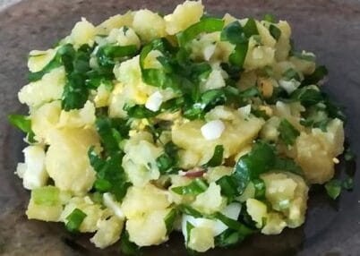 Salata noastră de cartofi cu leurda aduce un twist proaspăt și sănătos pe masa ta, combinând cartofii cu o vinaigretă delicată de mustar, ulei, și oțet, aromată cu ceapă și un strop de seminte de chimen. Pentru extra prospețime i-am adăugat și leurdă aromată, este ideală ca garnitură sau gustare rapidă, o alternativă savuroasă la salata orientală.